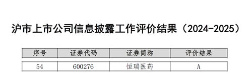 与此同时,在上海交易所公布的2024-2025年度沪市上市公司信息披露工作评价中,k8凯发天生赢家·一触即发医药再次荣获最高评级——A级。